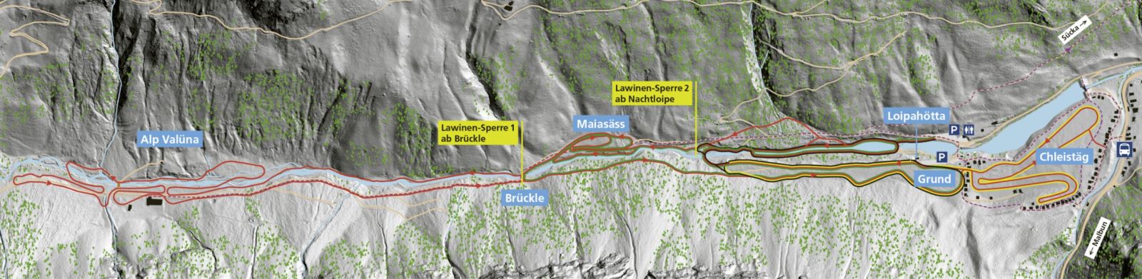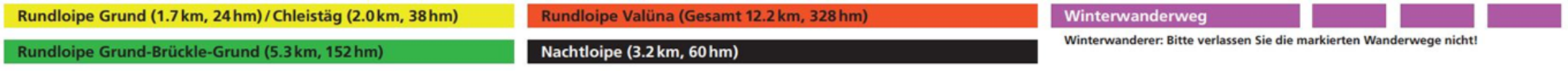 Es ist ein pures Langlaufvergnügen, durch die einmalige Winterlandschaft des Valünatals zu gleiten. Die 12,2 Kilometer lange schneesichere Loipe wird jeweils für die Klassisch- und Skatingtechnik bestens präpariert. Die Rundloipe ist abwechslungsreich, übersichtlich, familienfreundlich und somit für jeden Langlaufenden, ob Anfänger oder Profi, geeignet.